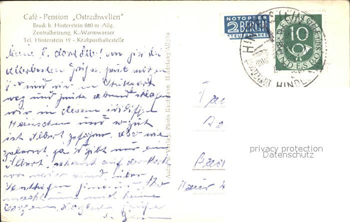 72251148 alte Postkarte Hinterstein Bad Hindelang Cafe Pension Ostrachwelten Bruck postalisch gelaufen Erhaltung siehe scans KatCode: 11110009780123