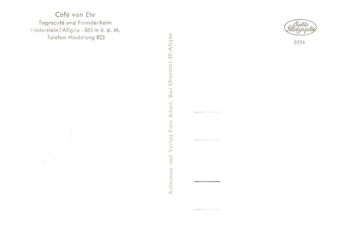 73878172 Hinterstein Bad Hindelang Cafe von Ehr Tagescafé Allgaeuer Alpen postalisch nicht gelaufen Erhaltung siehe scans [FriedD77] KatCode: 11110009780123