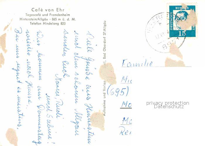 32731815 alte Postkarte Hinterstein Bad Hindelang Cafe von Ehr postalisch gelaufen Erhaltung siehe scans [WerneD78] KatCode: 11110009780123