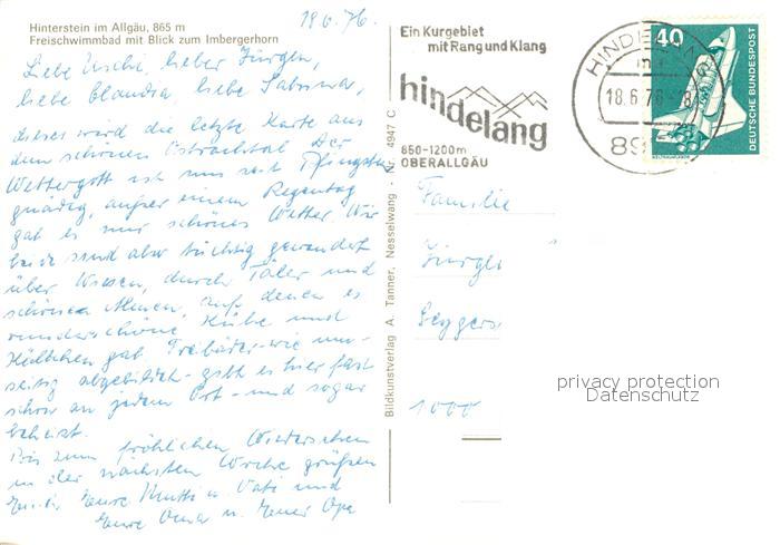 73647656 alte Postkarte Hinterstein Bad Hindelang Freischwimmbad mit Imbergerhorn postalisch gelaufen Erhaltung siehe scans [WerneD78] KatCode: 11110009780123