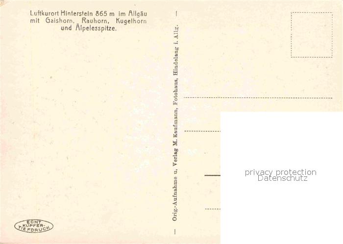 72797248 Hinterstein Bad Hindelang Gaishorn Rauhorn Kugelhorn aelpelsspitze postalisch nicht gelaufen Erhaltung siehe scans [AndreD76] KatCode: 11110009780123