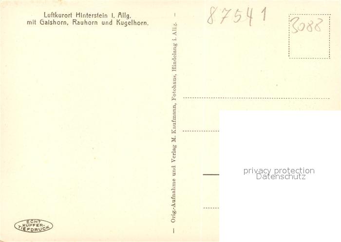 73294843 Hinterstein Bad Hindelang Gaishorn Rauhorn Kugelhorn postalisch nicht gelaufen Erhaltung siehe scans [NatalD47] KatCode: 11110009780123
