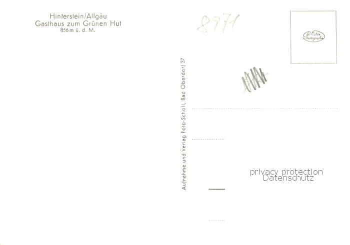 73755249 Hinterstein Bad Hindelang Gasthaus zum Gruenen Hut postalisch nicht gelaufen Erhaltung siehe scans [WerneD78] KatCode: 11110009780123