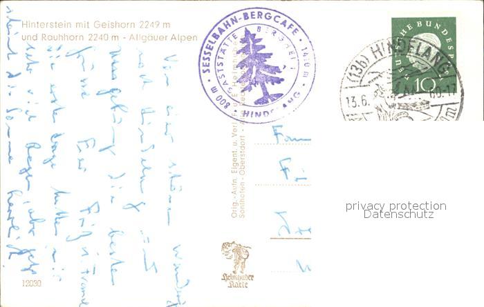 72361149 alte Postkarte Hinterstein Bad Hindelang Geishorn Rauhhorn postalisch gelaufen Erhaltung siehe scans KatCode: 11110009780123