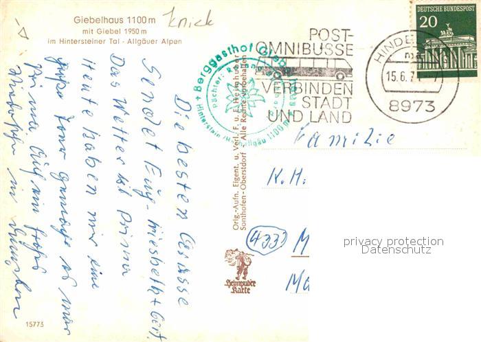 72866788 alte Postkarte Hinterstein Bad Hindelang Giebelhaus im Hintersteiner Tal postalisch gelaufen Erhaltung siehe scans [LiesaD40] KatCode: 11110009780123