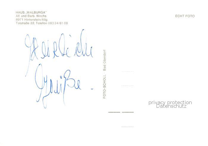 73804223 Hinterstein Bad Hindelang Haus Walburga postalisch nicht gelaufen Erhaltung siehe scans [FriedD77] KatCode: 11110009780123