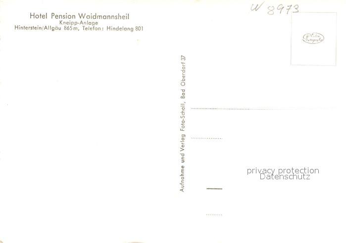 72951588 Hinterstein Bad Hindelang Hotel Pension Waidmannsheil Allgaeuer Alpen postalisch nicht gelaufen Erhaltung siehe scans [FriedD77] KatCode: 11110009780123