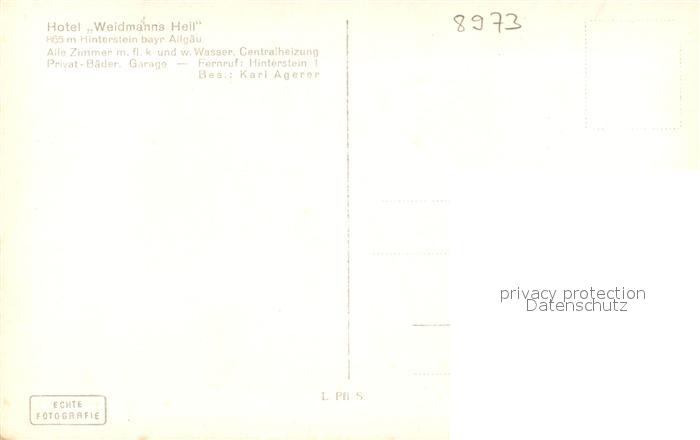 42963111 Hinterstein Bad Hindelang Hotel Pension Weidmanns Heil postalisch nicht gelaufen Erhaltung siehe scans [AndreD76] KatCode: 11110009780123