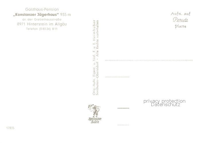 73839610 Hinterstein Bad Hindelang Konstanzer Jaegerhaus an der Giebelhausstrasse postalisch nicht gelaufen Erhaltung siehe scans [WerneD78] KatCode: 11110009780123
