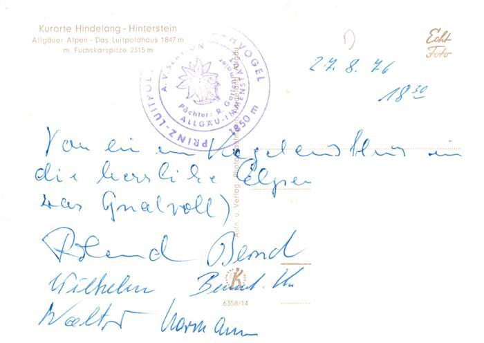 73932121 Hinterstein Bad Hindelang Luitpoldhaus mit Fuchskarspitze Allgaeuer Alpen postalisch nicht gelaufen Erhaltung siehe scans [FriedD77] KatCode: 11110009780123