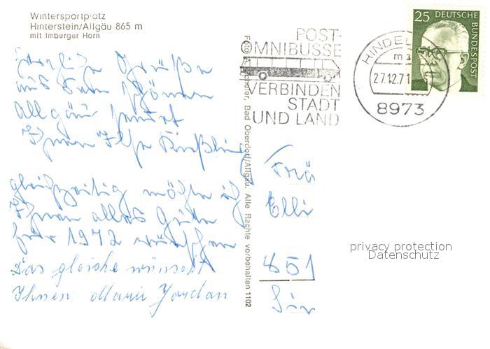 73333208 alte Postkarte Hinterstein Bad Hindelang mit Imberger Horn postalisch gelaufen Erhaltung siehe scans [WerneD78] KatCode: 11110009780123