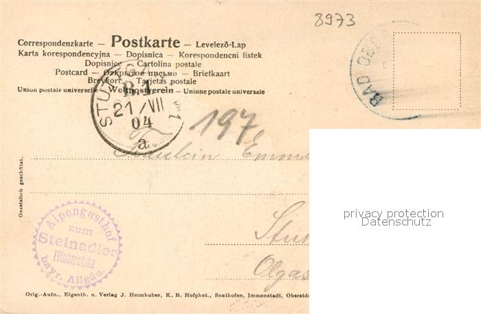 42963114 alte Postkarte Hinterstein Bad Hindelang Teilansicht postalisch gelaufen Erhaltung siehe scans [AndreD76] KatCode: 11110009780123