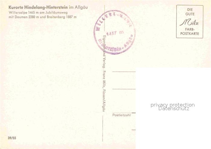 72886018 Hinterstein Bad Hindelang Willersalpe am Jubilaeumsweg Allgaeuer Alpen postalisch nicht gelaufen Erhaltung siehe scans [FriedD77] KatCode: 11110009780123