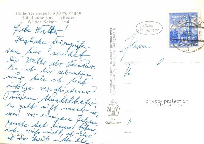 72642608 alte Postkarte Hintersteinersee mit Scheffauer Treffauer Wilder Kaiser postalisch gelaufen Erhaltung siehe scans [WerneD78] KatCode: 11390335070513