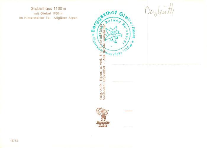 73937197 Hintersteinertal Giebelhaus mit Giebel postalisch nicht gelaufen Erhaltung siehe scans [WerneD78] KatCode: 11390