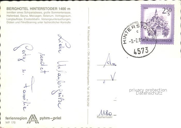 72479518 alte Postkarte Hinterstoder Berghotel postalisch gelaufen Erhaltung siehe scans KatCode: 11390314040903