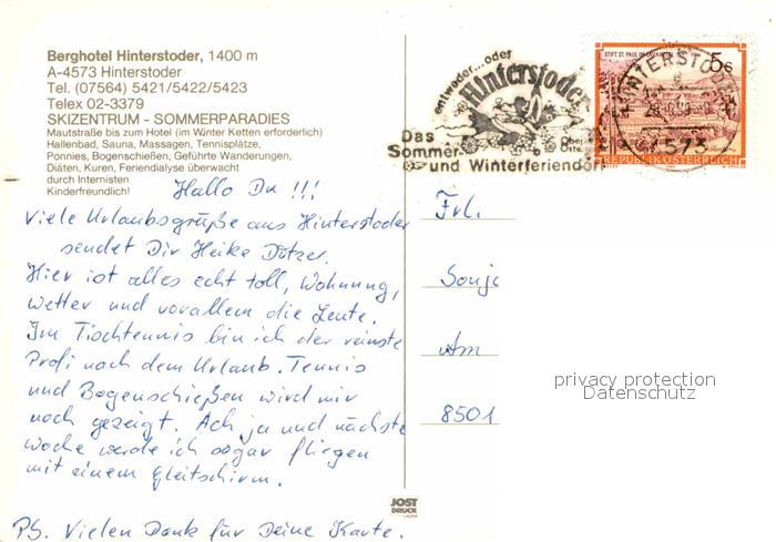 72700112 alte Postkarte Hinterstoder Berghotel Schwimmbad postalisch gelaufen Erhaltung siehe scans [KathaD79] KatCode: 11390314040903