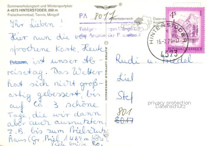 73028935 alte Postkarte Hinterstoder Fliegeraufnahme postalisch gelaufen Erhaltung siehe scans [PaolaD17] KatCode: 11390314040903