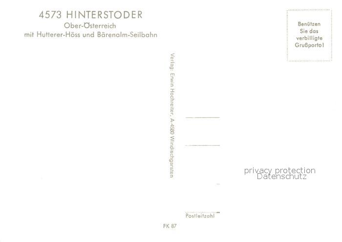 73070266 Hinterstoder Hutterer-Hoess Baerenalm-Seilbahn postalisch nicht gelaufen Erhaltung siehe scans [NatalD47] KatCode: 11390314040903
