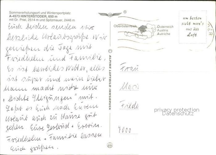 71822395 alte Postkarte Hinterstoder mit Gr Priel und Spitzmauer postalisch gelaufen Erhaltung siehe scans KatCode: 11390314040903