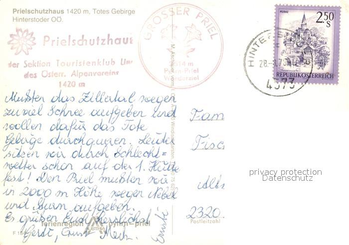 73288036 alte Postkarte Hinterstoder Prielschutzhaus postalisch gelaufen Erhaltung siehe scans [NatalD47] KatCode: 11390314040903