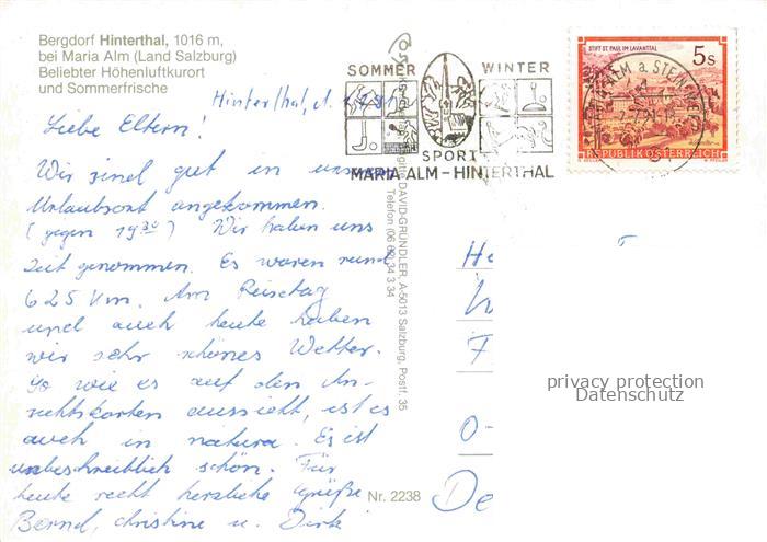 74027537 alte Postkarte Hinterthal AT Panorama Hoehenluftkurort Sommerfrische Ansicht mit Kirche Alpenpanorama postalisch gelaufen Erhaltung siehe scans [FriedD77] KatCode: 11390322050612