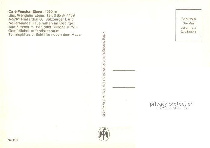 73518940 Hinterthal Cafe Pension Ebner Alpen postalisch nicht gelaufen Erhaltung siehe scans [FriedD77] KatCode: 11390322050612