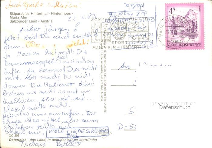 72025271 alte Postkarte Hinterthal Maria Alm Hintermoos postalisch gelaufen Erhaltung siehe scans KatCode: 11390322050612