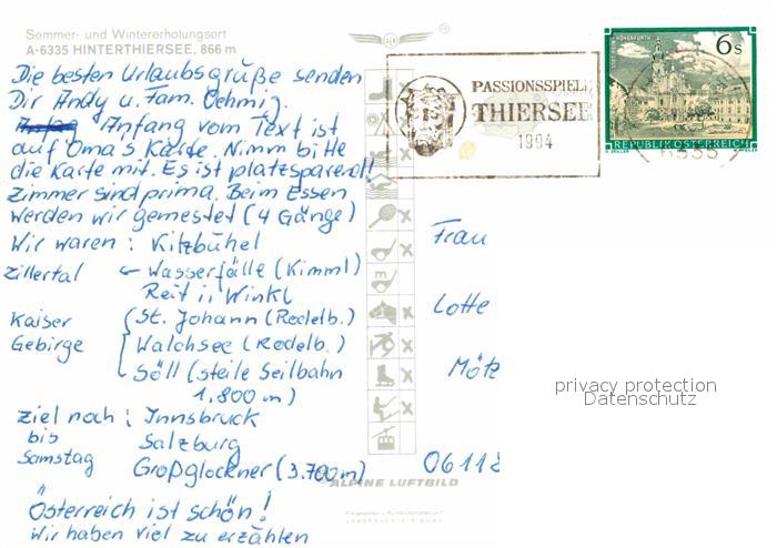 72750597 alte Postkarte Hinterthiersee Fliegeraufnahme postalisch gelaufen Erhaltung siehe scans [LiesaD40] KatCode: 11390