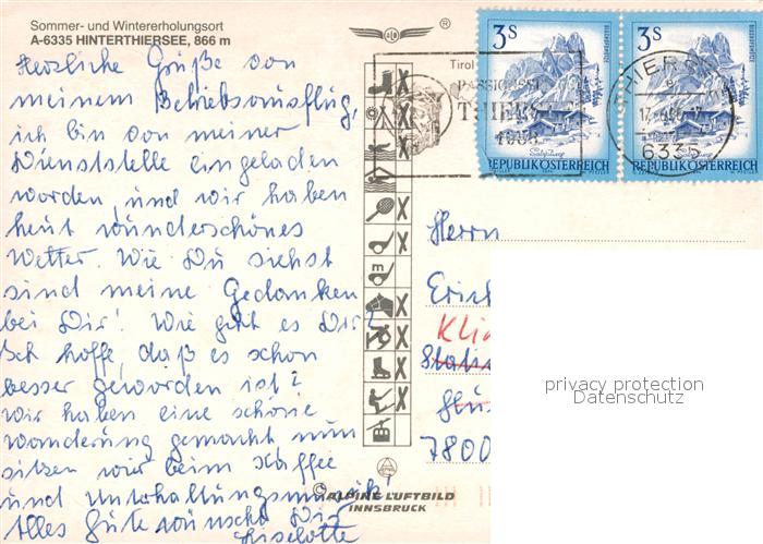 73512260 alte Postkarte Hinterthiersee Fliegeraufnahme mit Kaisergebirge postalisch gelaufen Erhaltung siehe scans [WerneD78] KatCode: 11390