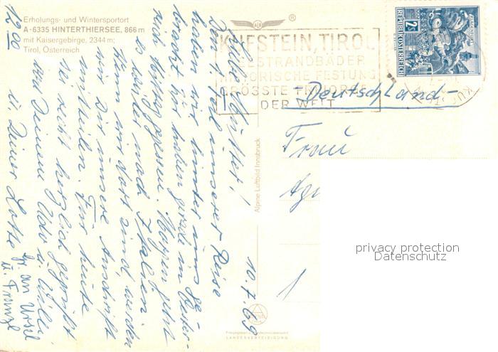 73682788 alte Postkarte Hinterthiersee Fliegeraufnahme mit Kaisergebirge postalisch gelaufen Erhaltung siehe scans [WerneD78] KatCode: 11390