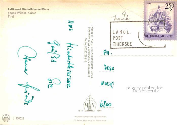 72760986 alte Postkarte Hinterthiersee gegen Wilden Kaiser Fliegeraufnahme postalisch gelaufen Erhaltung siehe scans [FriedD77] KatCode: 11390