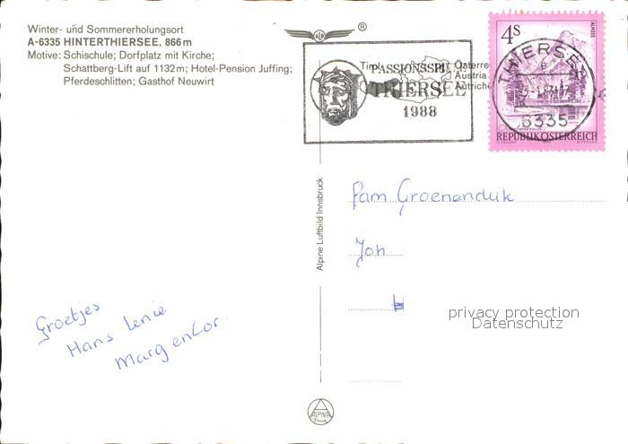 71981917 alte Postkarte Hinterthiersee Skischule Schattberg-Lift Dorfplatz Kirche postalisch gelaufen Erhaltung siehe scans KatCode: 11390