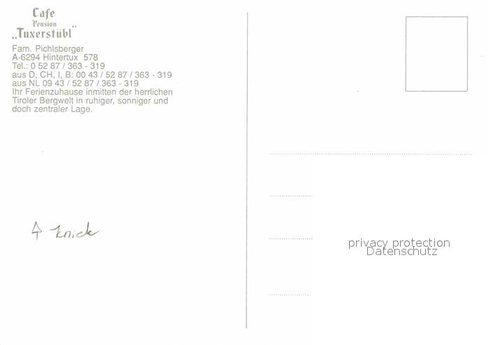 12852298 Hintertux Zillertal Cafe Pension Tuxerstuebl postalisch nicht gelaufen Erhaltung siehe scans [KathaD81] KatCode: 11390335070934
