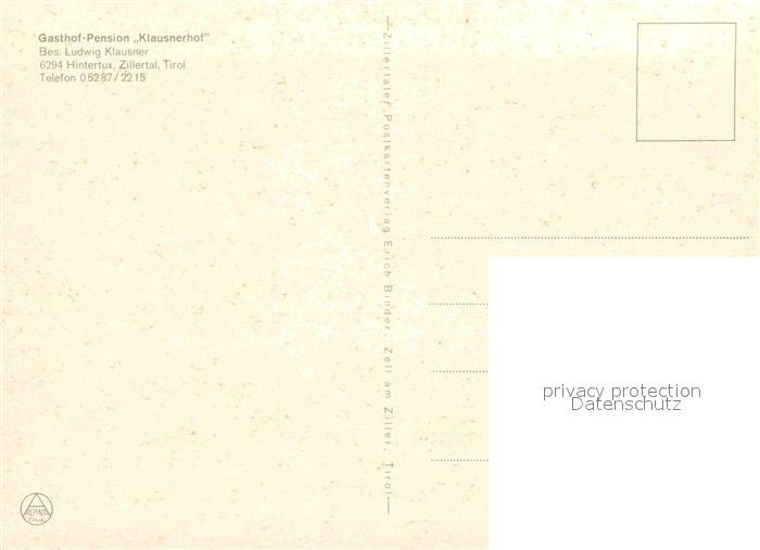 12637401 Hintertux Zillertal Gasthaus Pension Klausnerhof postalisch nicht gelaufen Erhaltung siehe scans [LiesaD40] KatCode: 11390335070934
