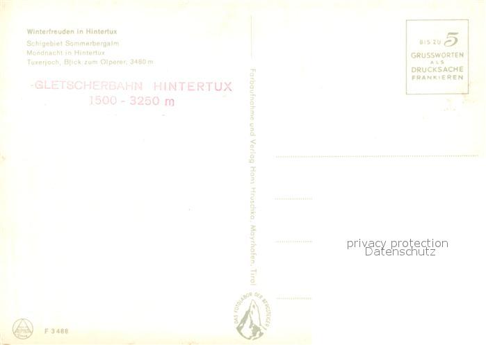 73668393 Hintertux Zillertal Schigebiet Sommerbergalm Mondnacht Tuxerjoch Blick gegen Olperer Zillertaler Alpen postalisch nicht gelaufen Erhaltung siehe scans [FriedD77] KatCode: 11390335070934