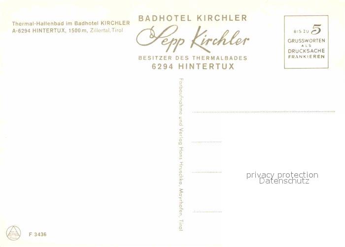 72733170 Hintertux Zillertal Thermal Hallenbad im Badhotel Kirchler postalisch nicht gelaufen Erhaltung siehe scans [FriedD77] KatCode: 11390335070934