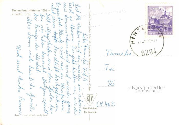72639577 alte Postkarte Hintertux Zillertal Thermalbad Berggasthaus Alpenpanorama postalisch gelaufen Erhaltung siehe scans [FriedD77] KatCode: 11390335070934