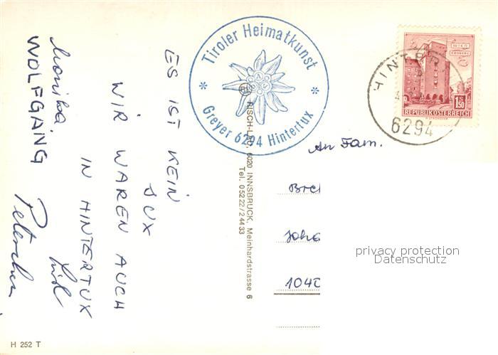 73336751 alte Postkarte Hintertux Zillertal Tiroler Heimatkunst Greyer Details postalisch gelaufen Erhaltung siehe scans [WerneD78] KatCode: 11390335070934