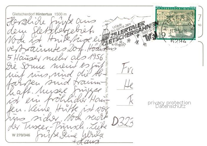 73121400 alte Postkarte Hintertux Zillertal Winterpanorama postalisch gelaufen Erhaltung siehe scans [KathaD81] KatCode: 11390335070934