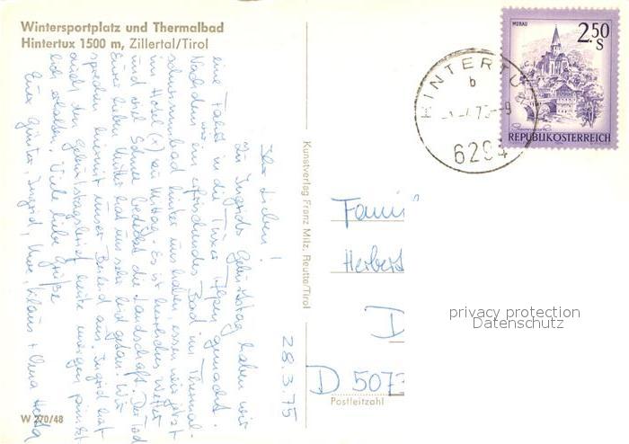 73013946 alte Postkarte Hintertux Zillertal Wintersportplatz postalisch gelaufen Erhaltung siehe scans [KathaD81] KatCode: 11390335070934