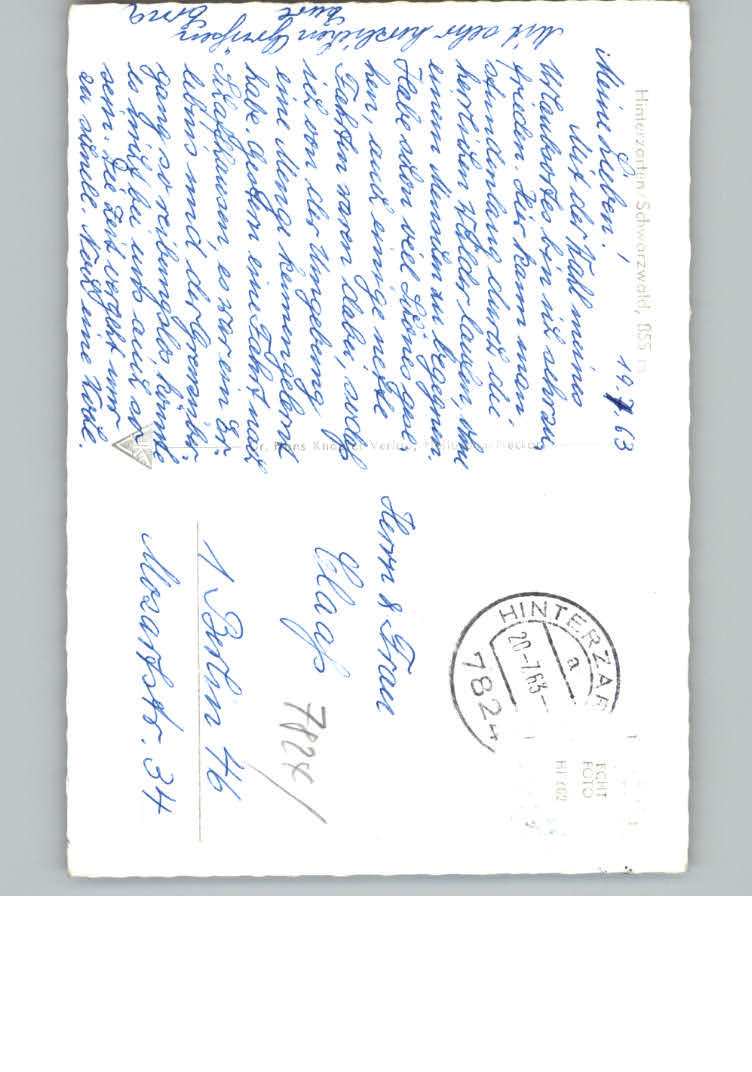 31153042 Hinterzarten postalisch nicht gelaufen KatCode: 11110008315052