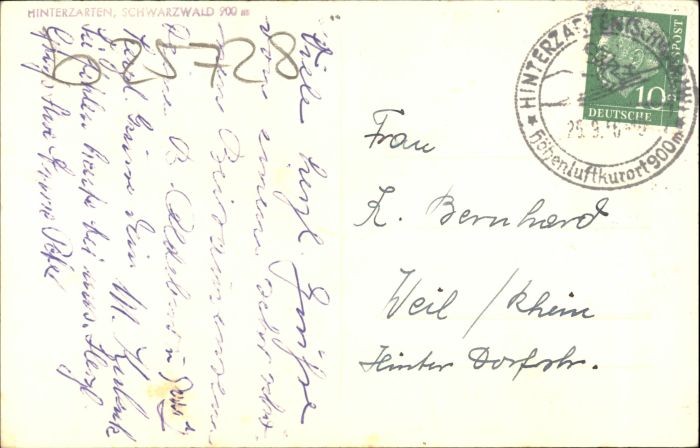 30725893 alte Postkarte Hinterzarten postalisch gelaufen KatCode: 11110008315052
