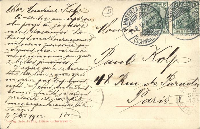 41076732 Hinterzarten Breisgau-Hochschwarzwald BW postalisch gelaufen Alte Ansichtskarte Postkarte alte Postkarte Elvi Katcode 11110008315052