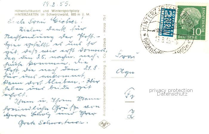 73142653 alte Postkarte Hinterzarten Breisgau-Hochschwarzwald BW postalisch gelaufen Erhaltung siehe scans [NatalD47] KatCode: 11110008315052