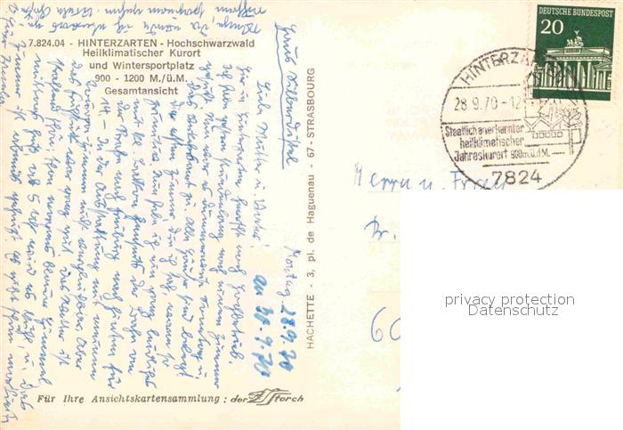 72842540 alte Postkarte Hinterzarten Breisgau-Hochschwarzwald BW postalisch gelaufen Erhaltung siehe scans [NatalD47] KatCode: 11110008315052