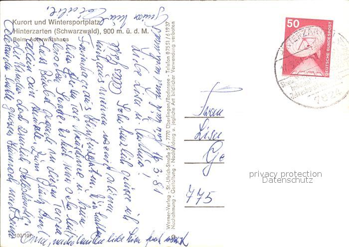 72289608 alte Postkarte Hinterzarten Breisgau-Hochschwarzwald BW Adlerwirtshaus postalisch gelaufen Erhaltung siehe scans KatCode: 11110008315052
