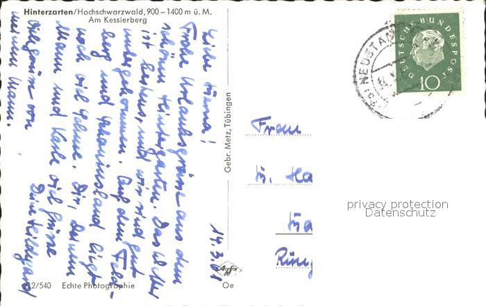 72201047 alte Postkarte Hinterzarten Breisgau-Hochschwarzwald BW Am Kesslerberg postalisch gelaufen Erhaltung siehe scans KatCode: 11110008315052