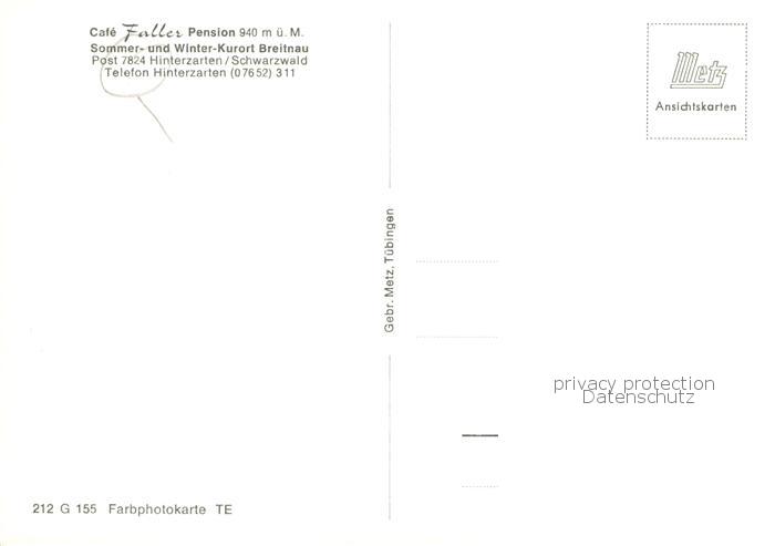 73863360 Hinterzarten Breisgau-Hochschwarzwald BW Cafe Pension Faller Winter im Schwarzwald postalisch nicht gelaufen Erhaltung siehe scans [FriedD77] Frie Katcode 11110008315052