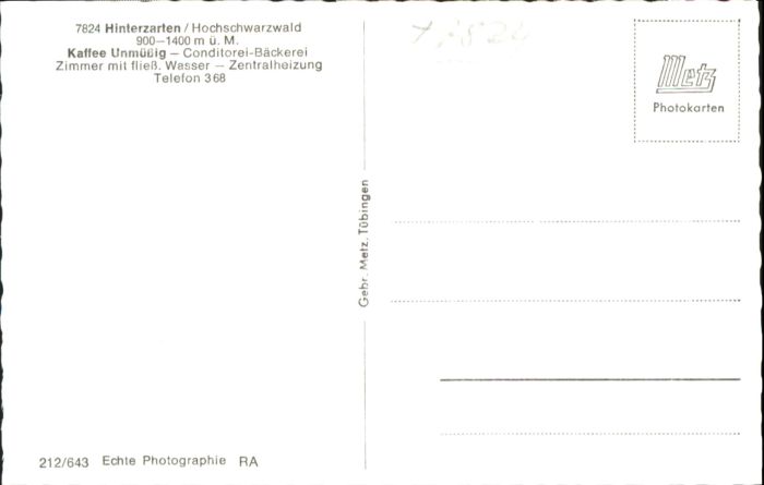 40769802 Hinterzarten Breisgau-Hochschwarzwald BW Cafe Unmuessig postalisch nicht gelaufen Alte Ansichtskarte Postkarte Katcode 11110008315052